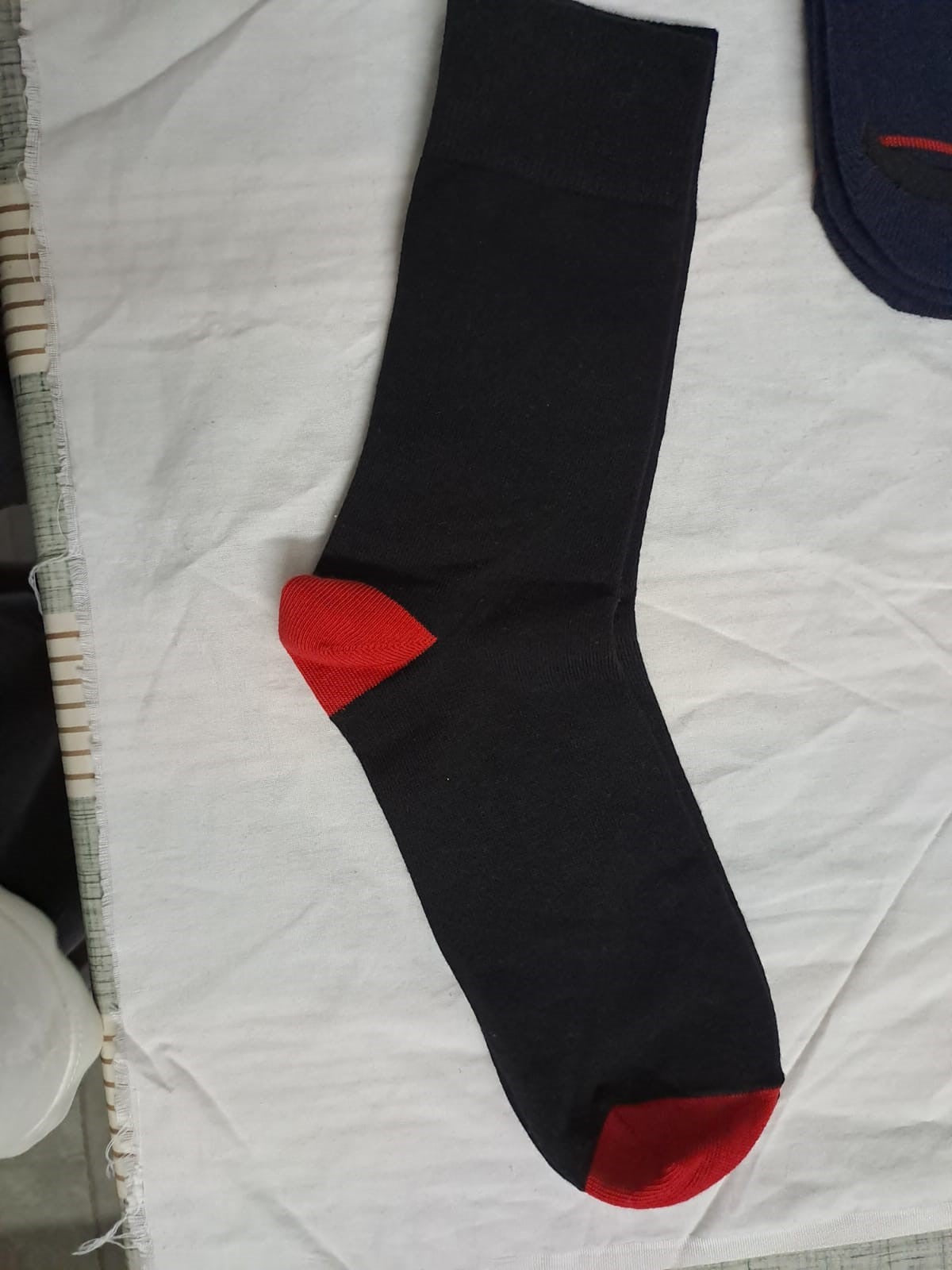 Classic black socks energized with bold red accents—style that speaks confidence.