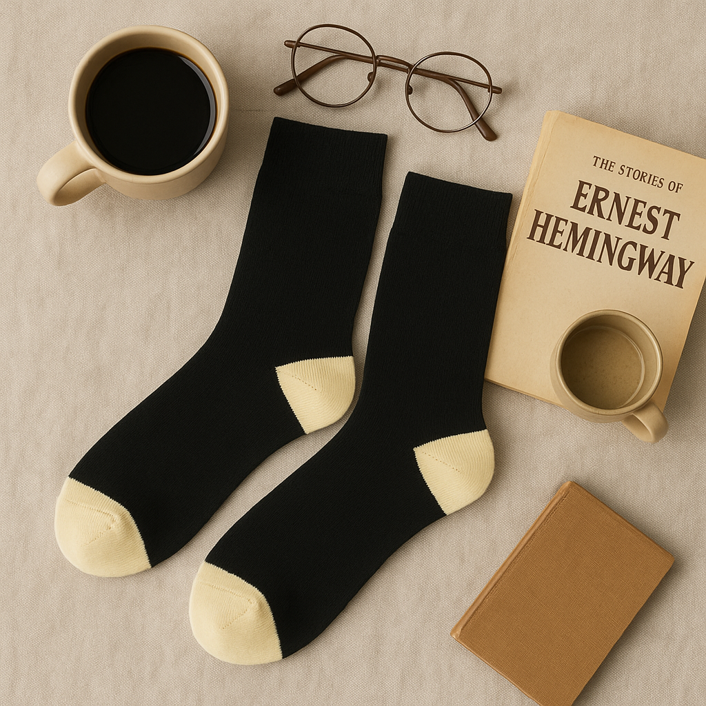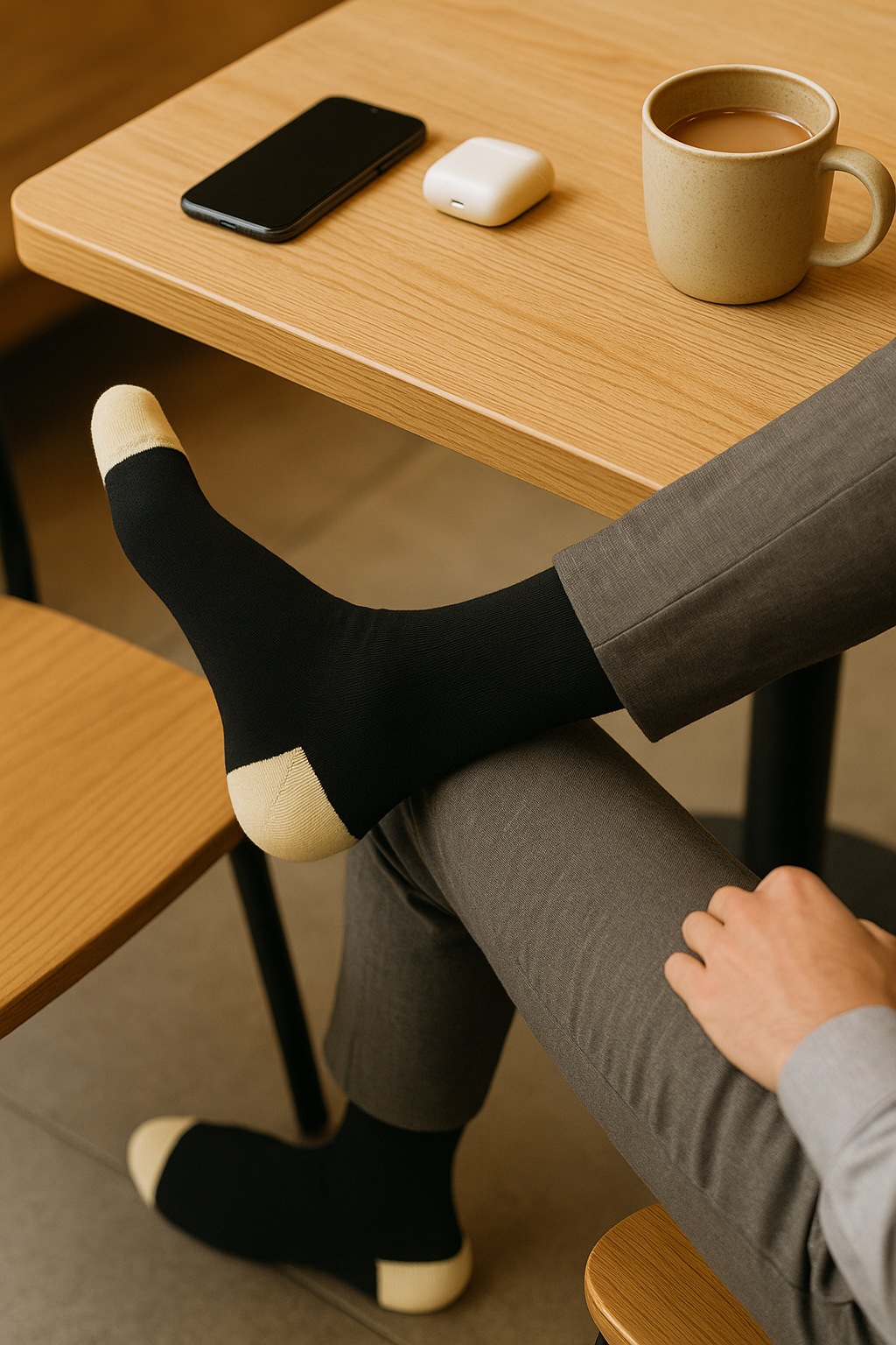 Sophisticated black socks uplifted by elegant cream heel and toe details.