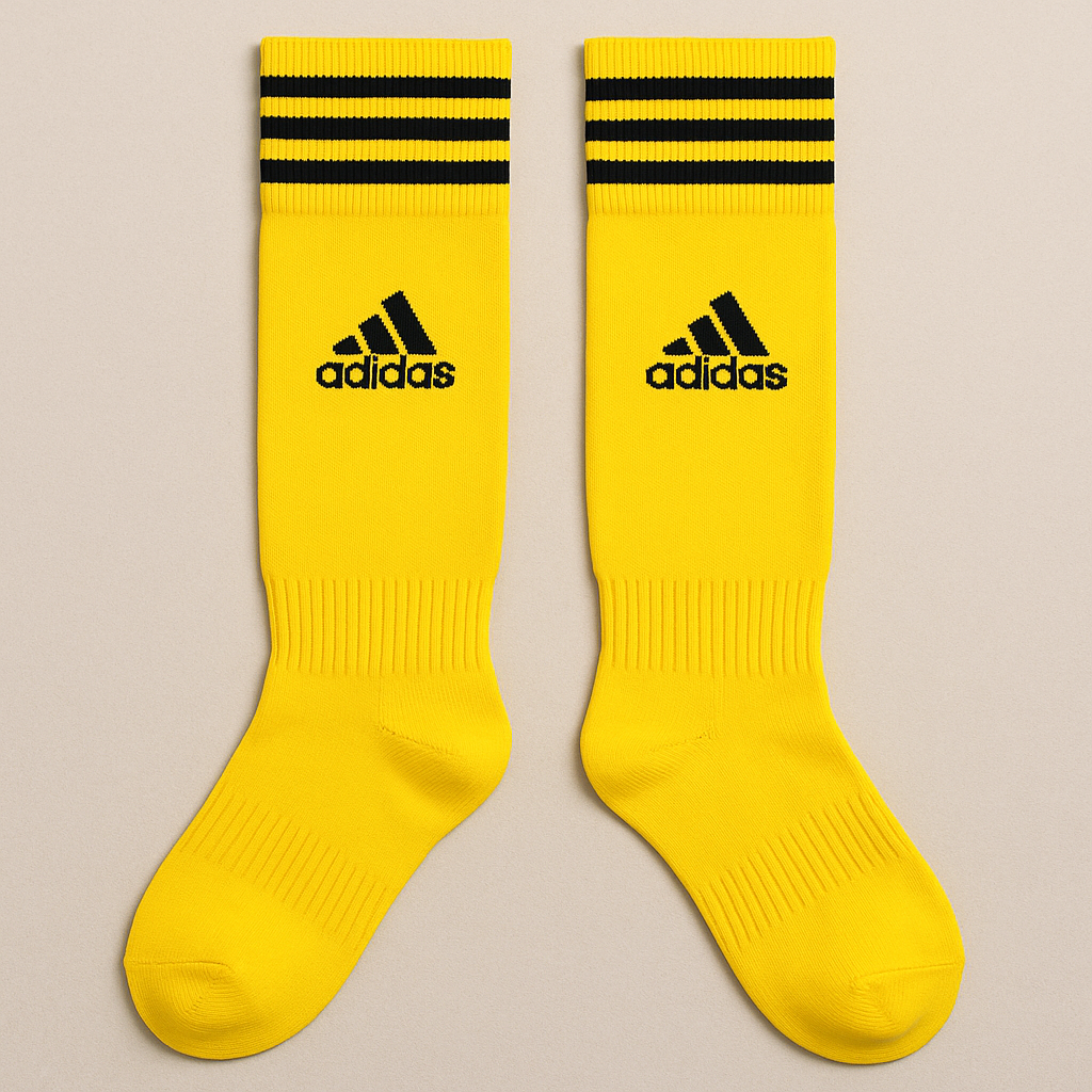 Bright yellow Adidas soccer socks designed for bold on-field style.