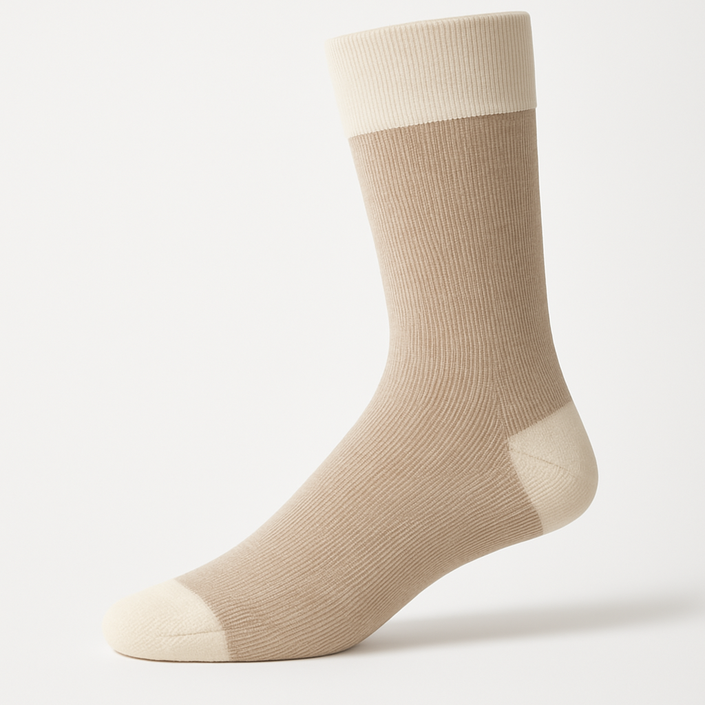 Subtle ash beige body paired with lighter beige heel, toe, and welt.