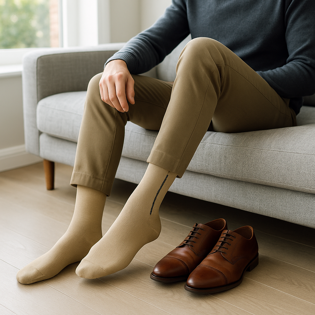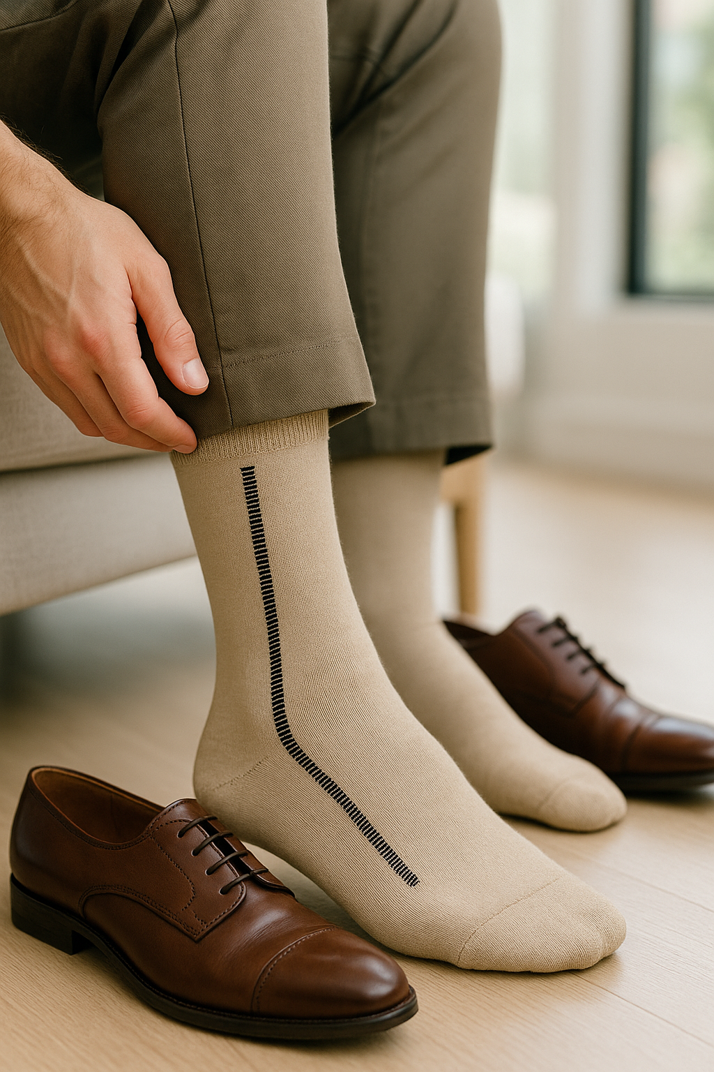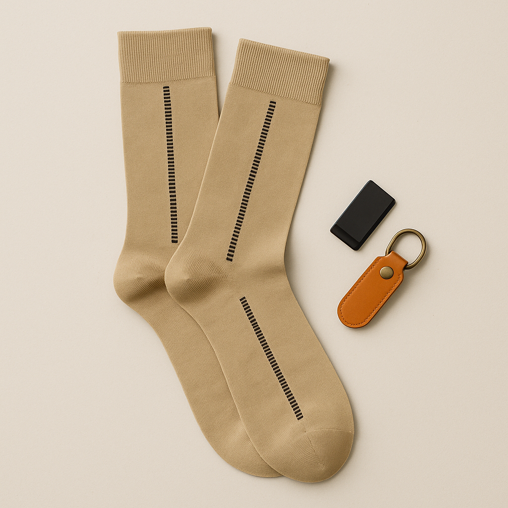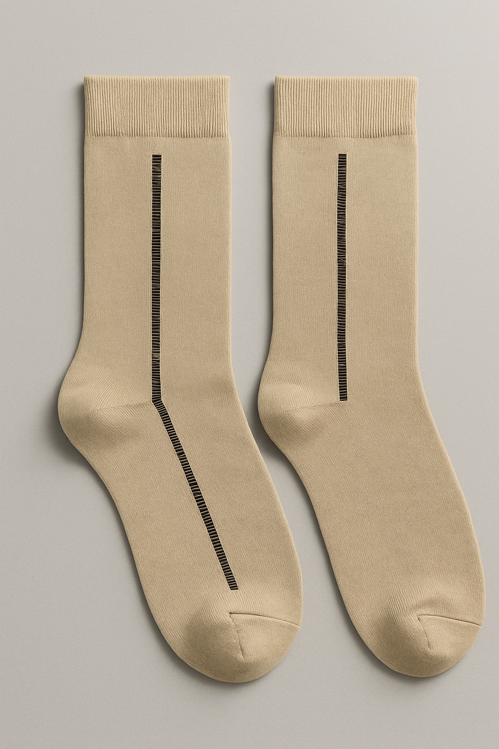 Beige Dress Socks with Vertical Micro-Bar Stripe