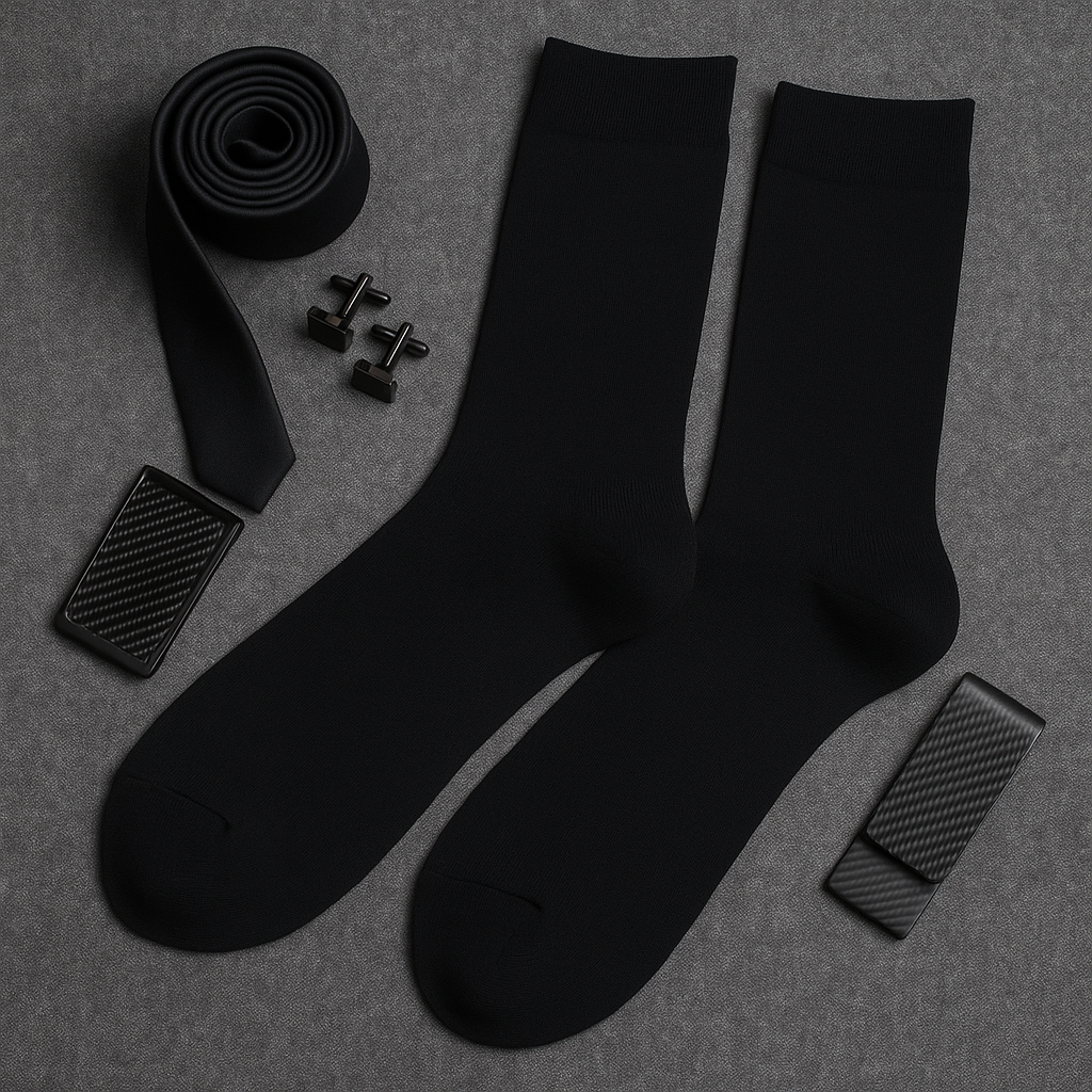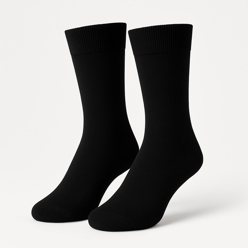 Clean, all-black socks with a smooth, durable knit for everyday polish.