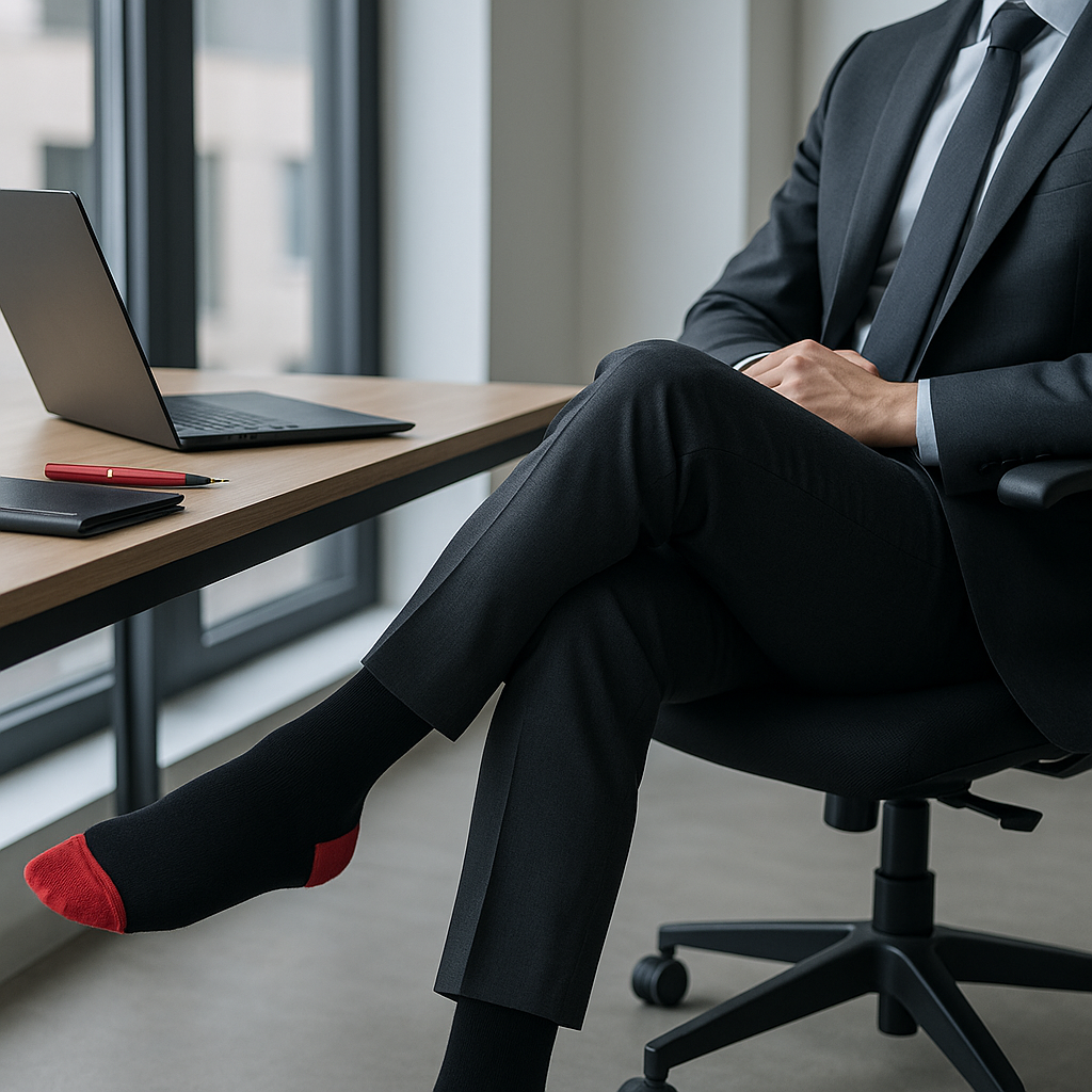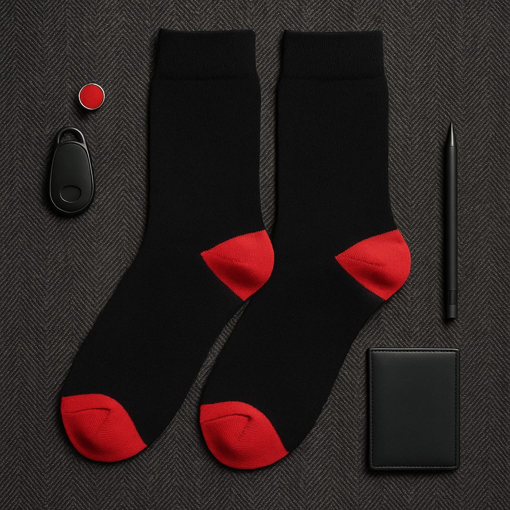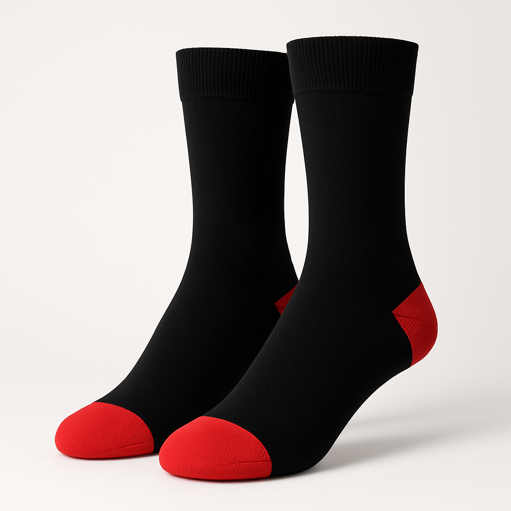 Jet Black Crew Socks with Vivid Red Accents