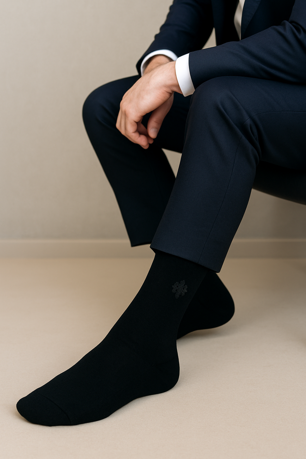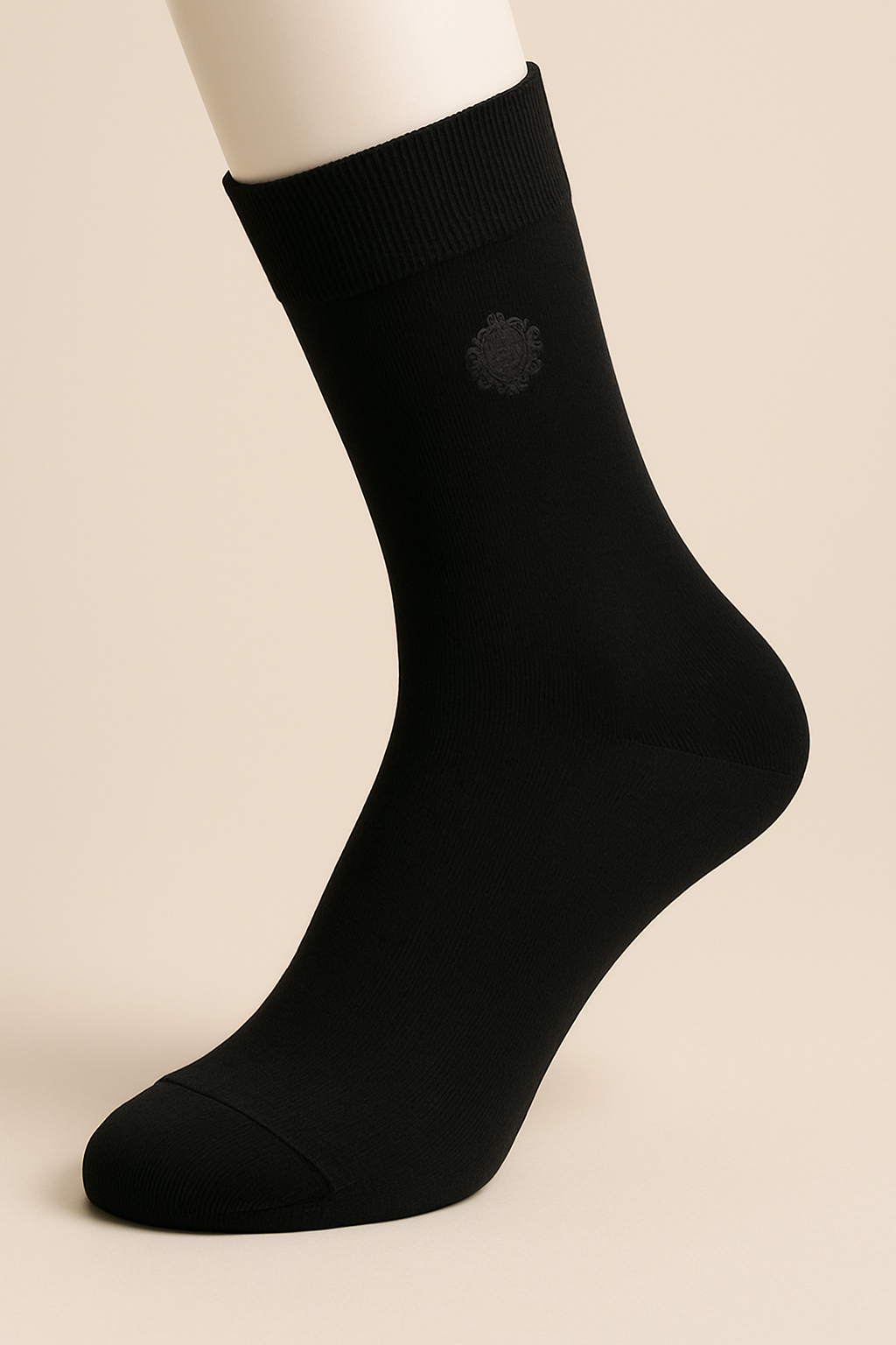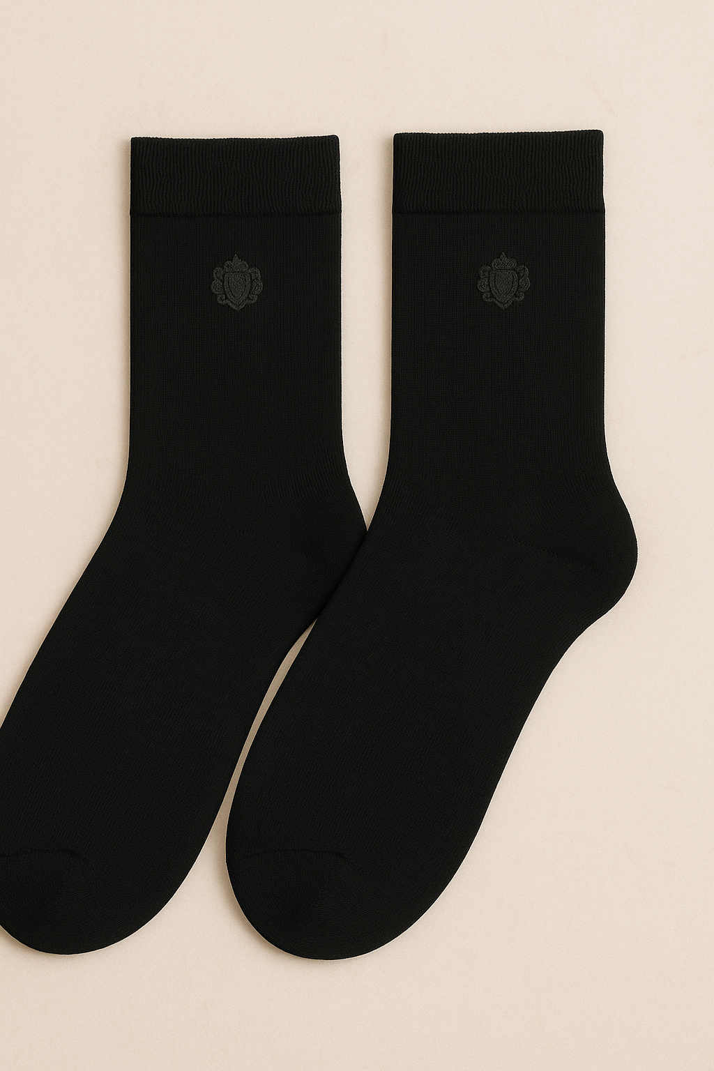 1:Define timeless class with Soaxio Midnight Crest Classic socks — deep black elegance enhanced by a subtle woven crest emblem.