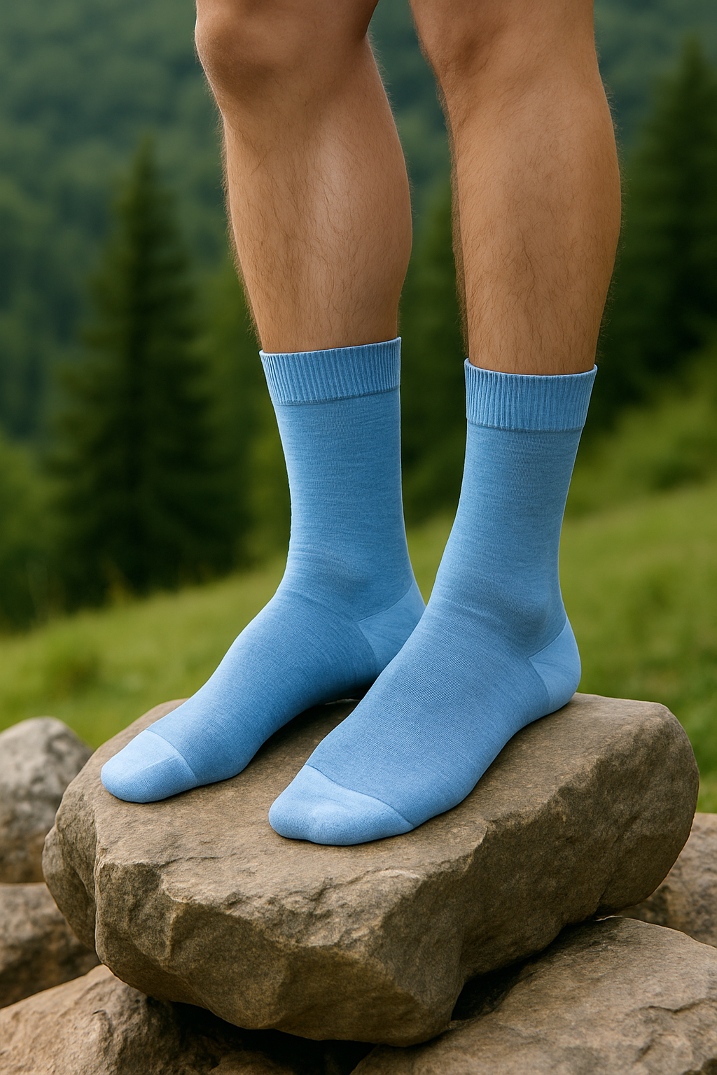 Fresh sky-blue tone with subtle texture for a modern casual look.