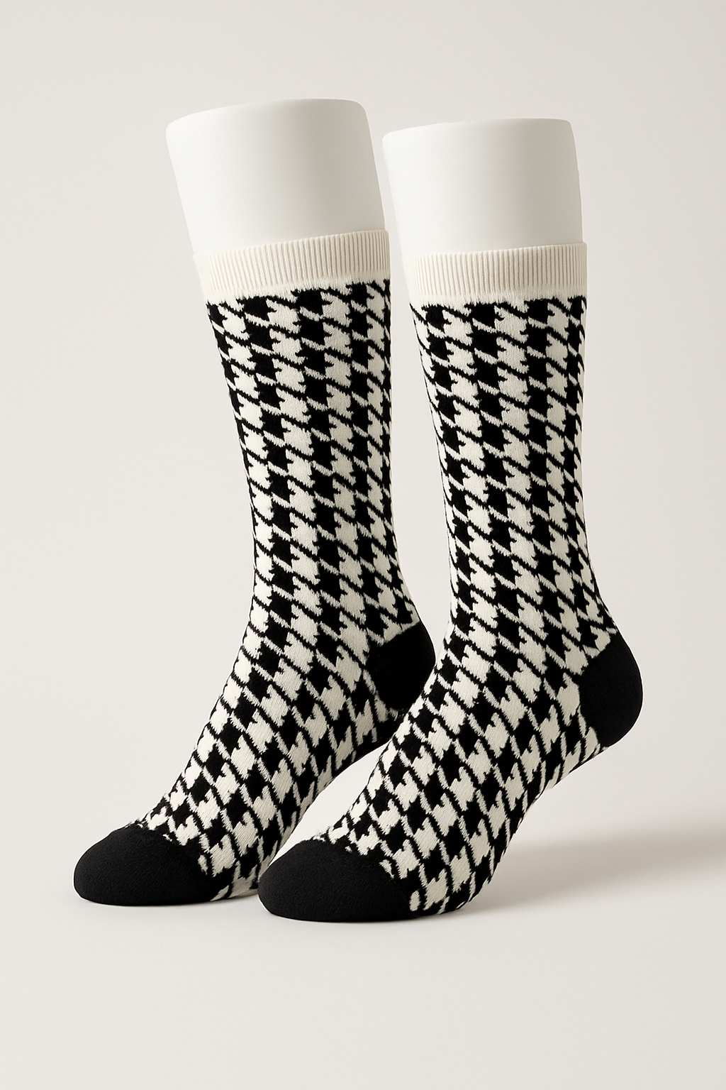Step up your style with these timeless black-and-white houndstooth patterned socks.