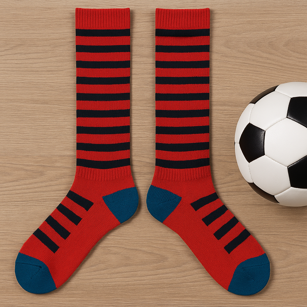 SOAXIO Kids Soccer Socks (Red with Black Stripes