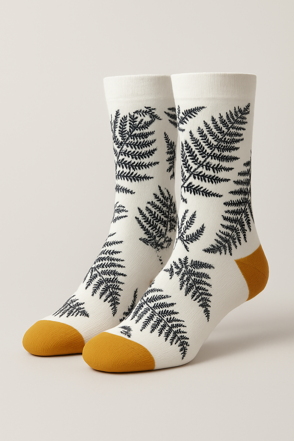 Nature-inspired fern print in bold black adds a refreshing, stylish vibe.